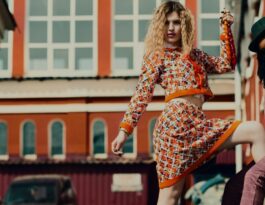 Posing with a beautiful blue dress